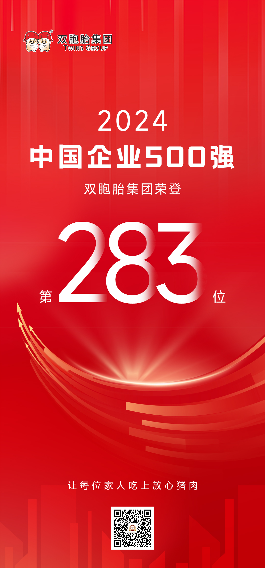 稳步提升!双胞胎集团位列2024中国企业500强榜单第283位!