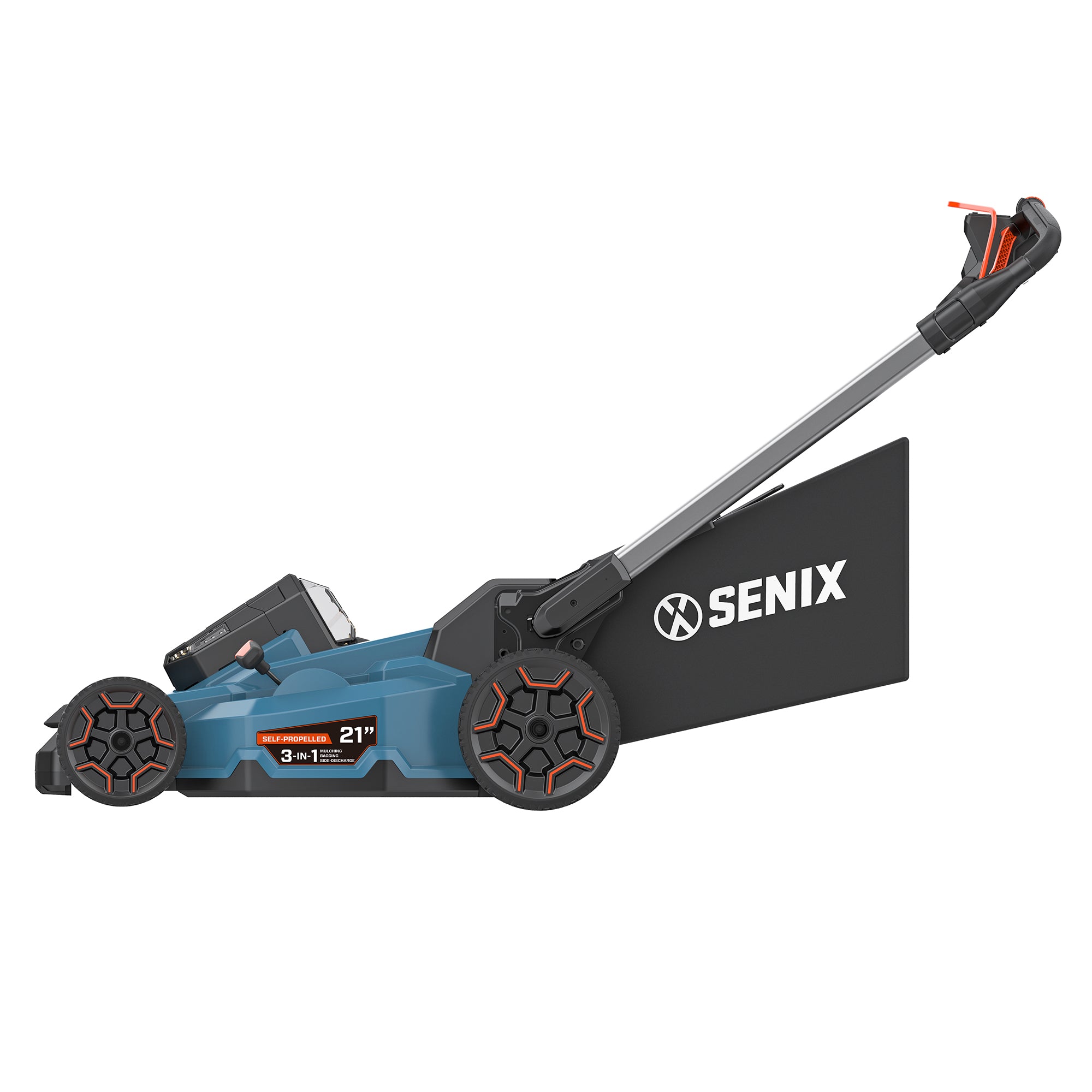 Keep your lawn looking its best with the 60 Volt Max* 21-inch Cordless, Brushless Self Propelled Mower (Battery and Charger Included), LPSX6-H. With its 3-N-1 function, you can mulch, bag or side discharge your grass clippings with ease. The mower also features an easy-to-read on-board display of battery status and mode, as well as LED lights for added visibility and convenience. This mower has adjustable height settings and a heavy-duty bag, allowing a maximum collection of up to 1.7 bushels of clippings. Plus, when you're done, the mower conveniently folds down and can be stored upright, saving valuable space in your garage. Recommended for yards up to 1/2 acre, this mower comes with a 5-year limited warranty on the mower and a 3-year limited warranty on the battery and charger.